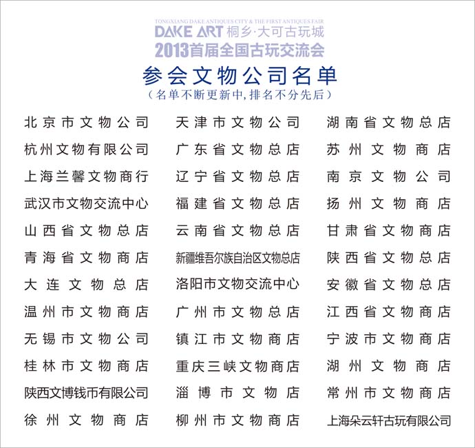逢熙朝,文事昌;立一城,藏天下。桐乡大可古玩城将于2013年9月25日至9月27日在浙江省桐乡市举办‘2013大可古玩城首届全国古玩交流会’。