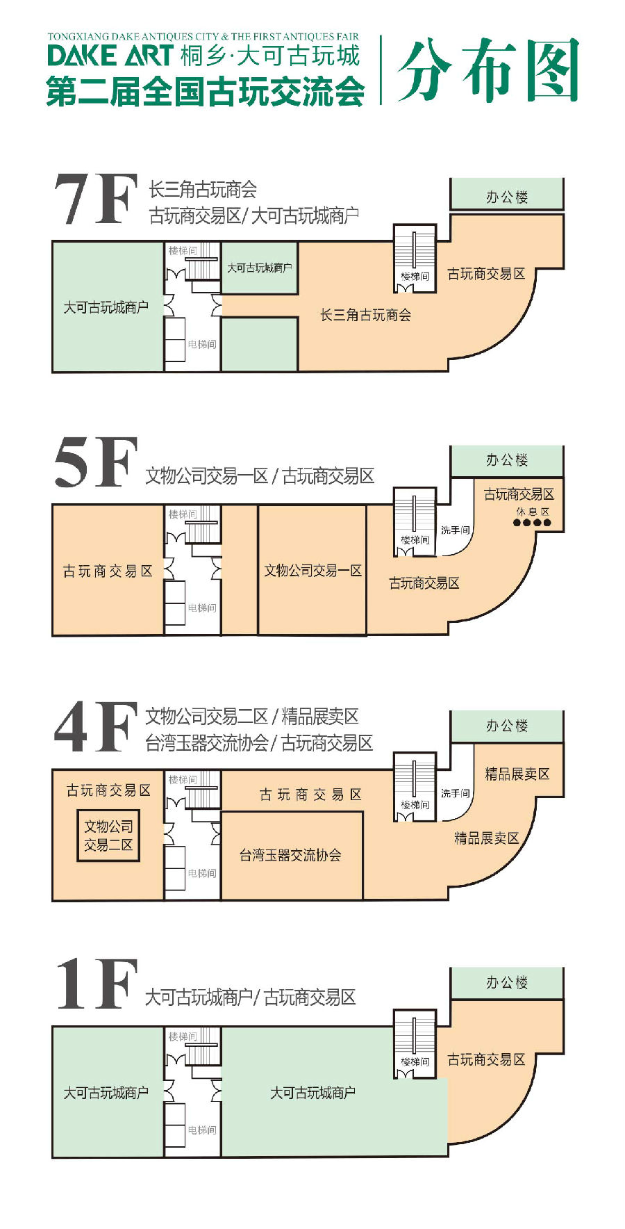 (橘色为本届交流会交易区,绿色为大可古玩城驻场经营户)