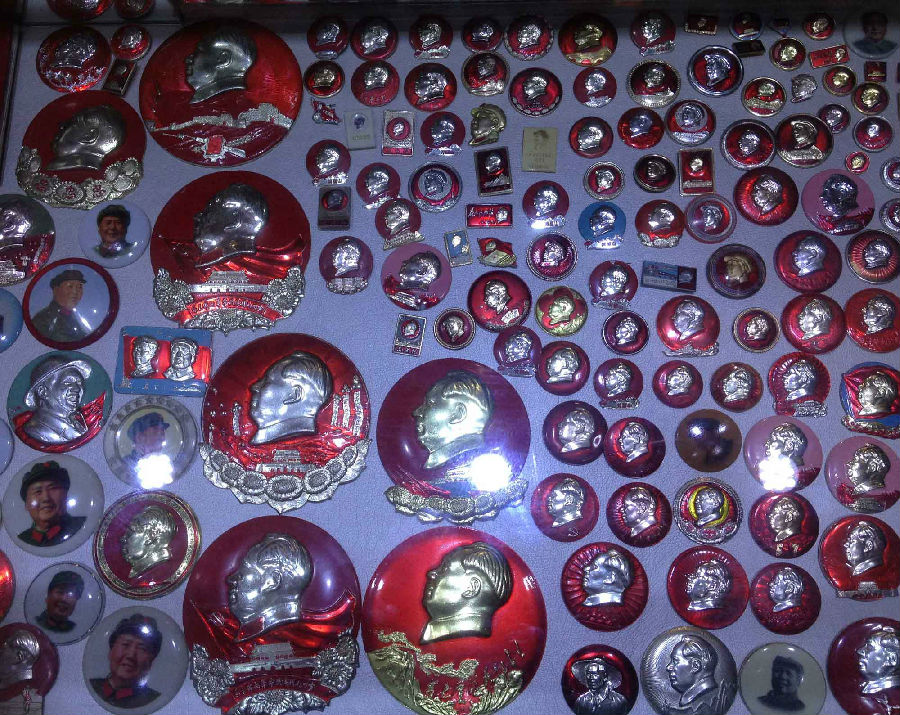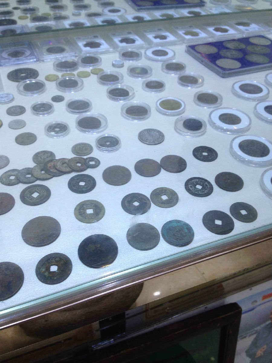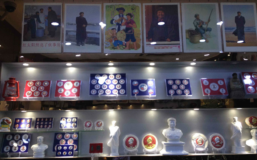 与其他古玩店不同,这家名叫“大通宝泉”的店里满是店主各处搜罗来的红色藏品和钱币: 精致的毛主席塑像和像章,历经沧桑保存完好的红色革命宣传画,饱含历史信息和时代烙印的各类瓷器和钱币等,具有鲜明的时代特色。一进到这里,不禁让人想起六、七十年代家中的陈设。