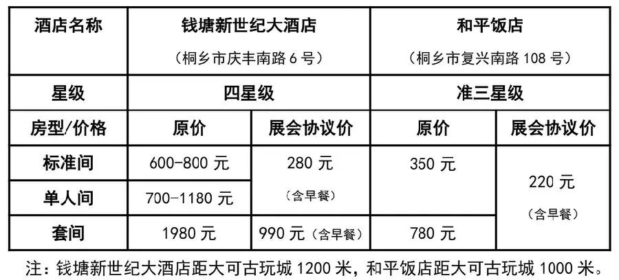由于参加 “珠联璧合——桐乡大可古玩城·第二届全国古玩交流会”的参展商人数众多,本次活动的协议酒店客房数量紧张,需住宿的商家请提前打电话至酒店预订房间,以免到时对您的出行造成不便。(预定时请主动告知酒店,你本人为本次交流会参展商)